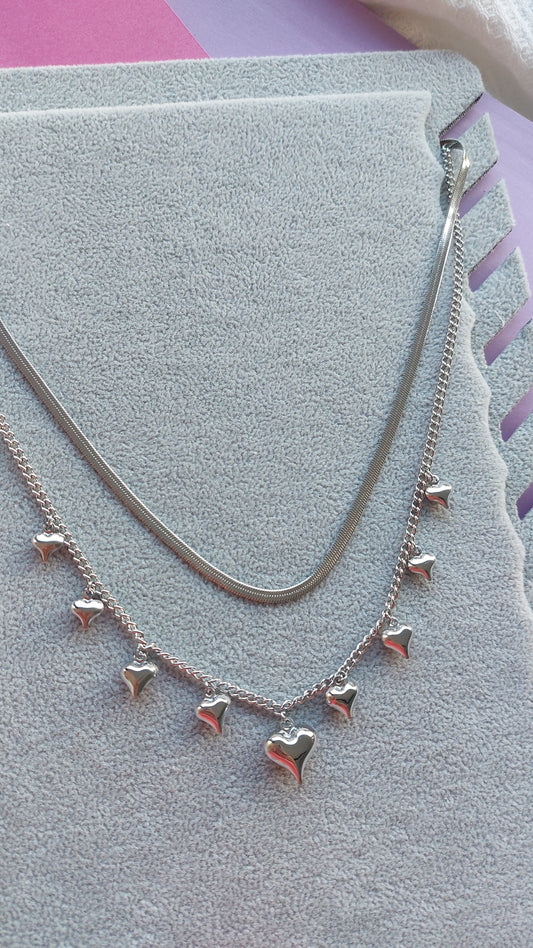 EsauritoCollana Charmi Cuoricini Silver